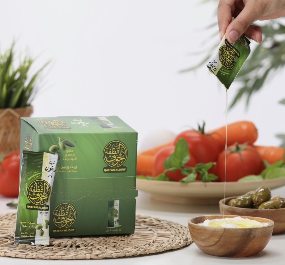 كرتون أظرف زيت زيتون بكر ممتاز يحتوي على 20 ظرف سهلة الاستخدام